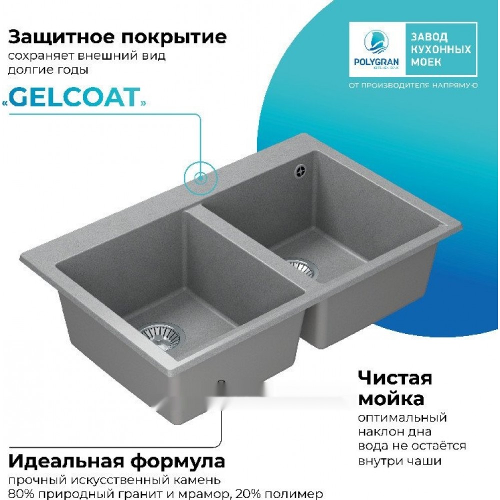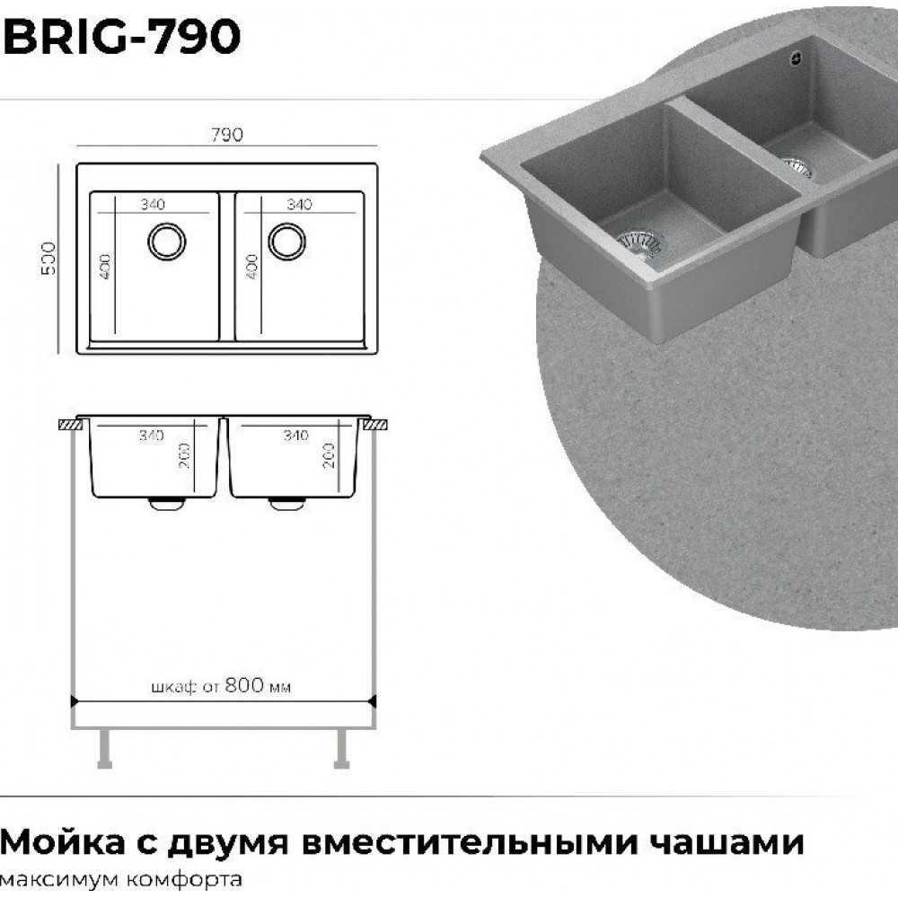 Описание Кухонная мойка Polygran Brig 790 (серый)
