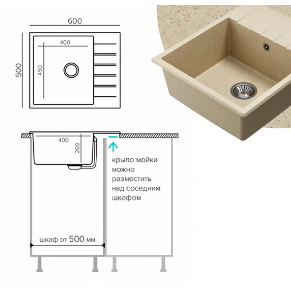 Ширина мойки: 50 см