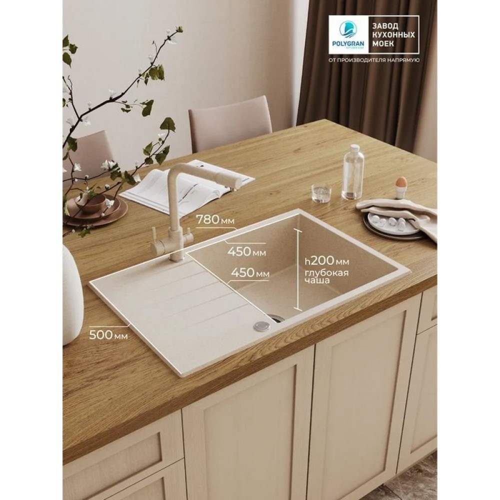 Описание Кухонная мойка Polygran Deka 780 (кремовый)