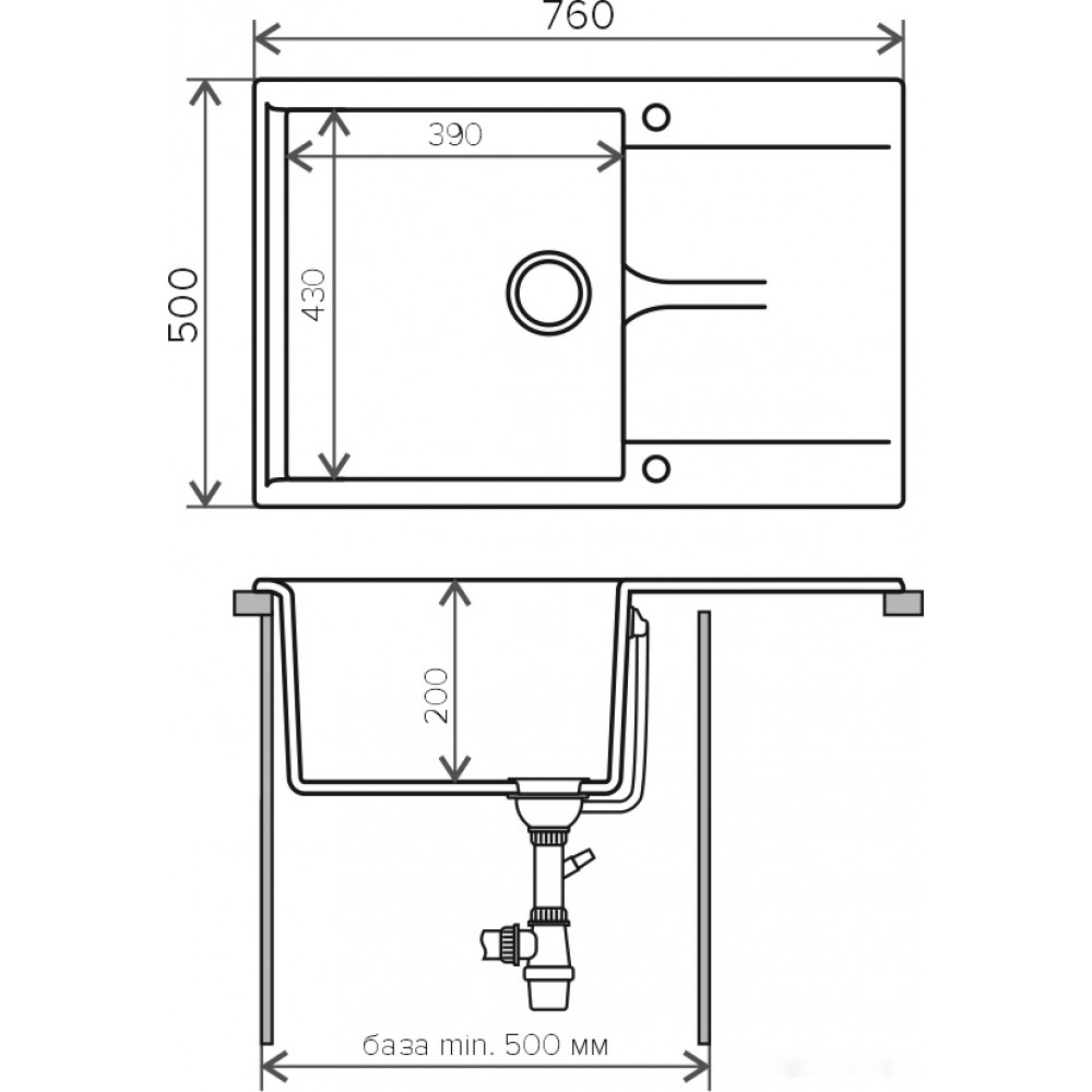 Ширина мойки: 76 см