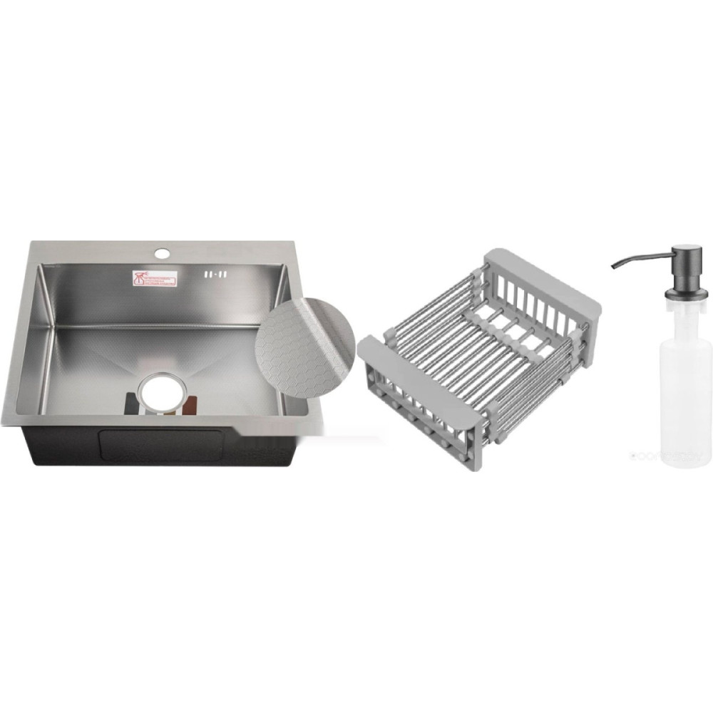Технические характеристики Кухонная мойка Schtoff Best Decor Silver 5550 + коландер KR-1 GREY + дозатор SD-1 GREY