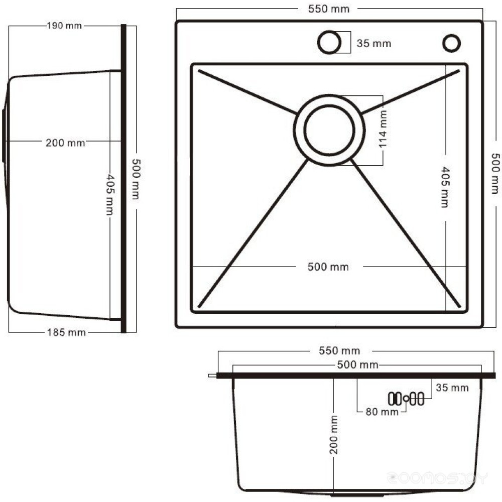 | Ширина мойки | 55 см |