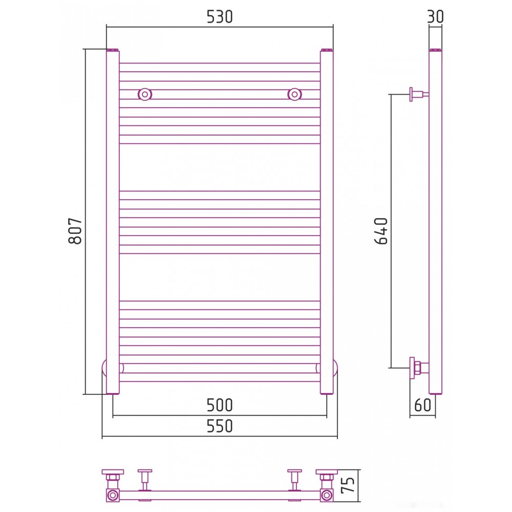 Технические характеристики Полотенцесушитель Сунержа Модус 800х500 8011-0250-8050