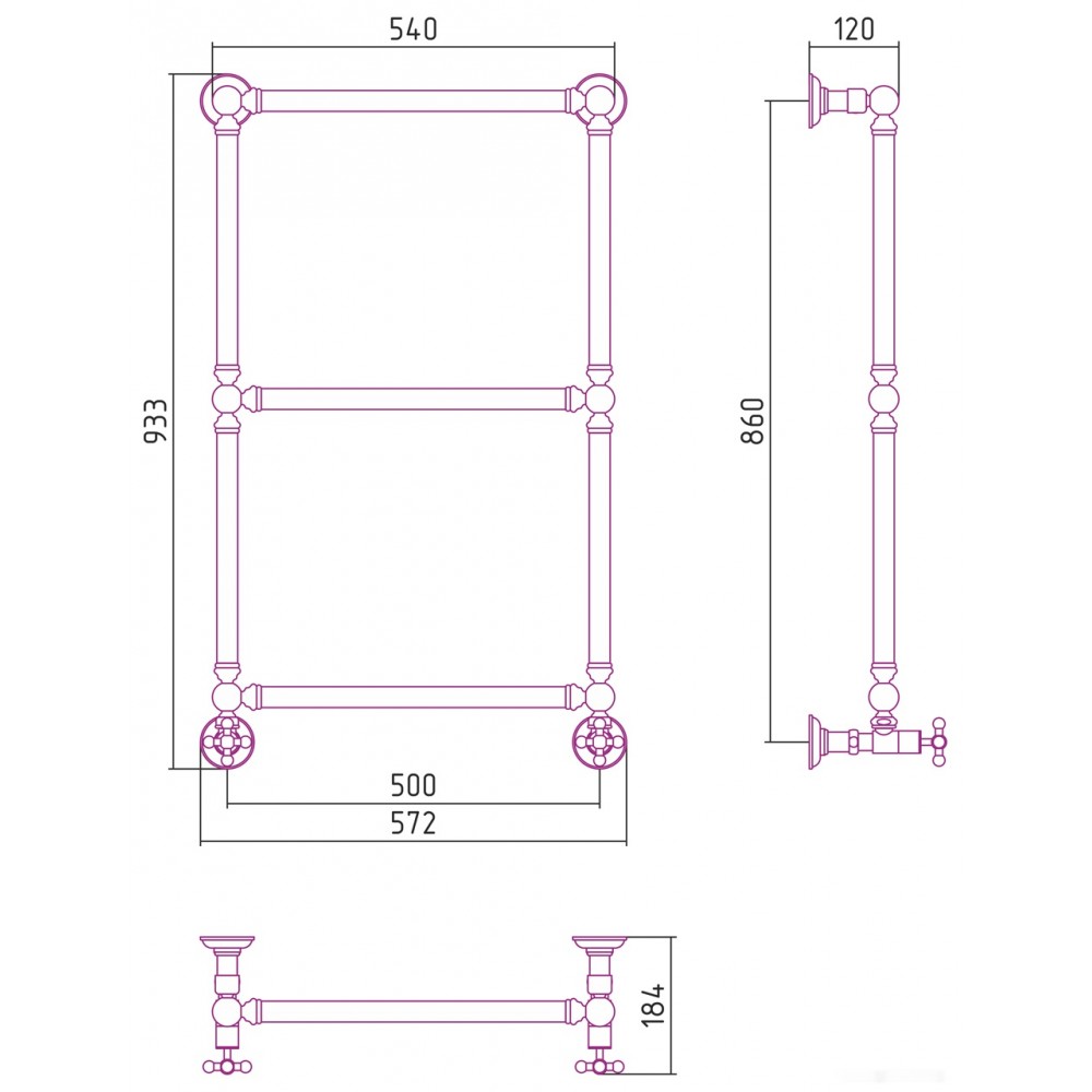 Описание Полотенцесушитель Сунержа Ренессанс 1304 860х500 032-0280-8650