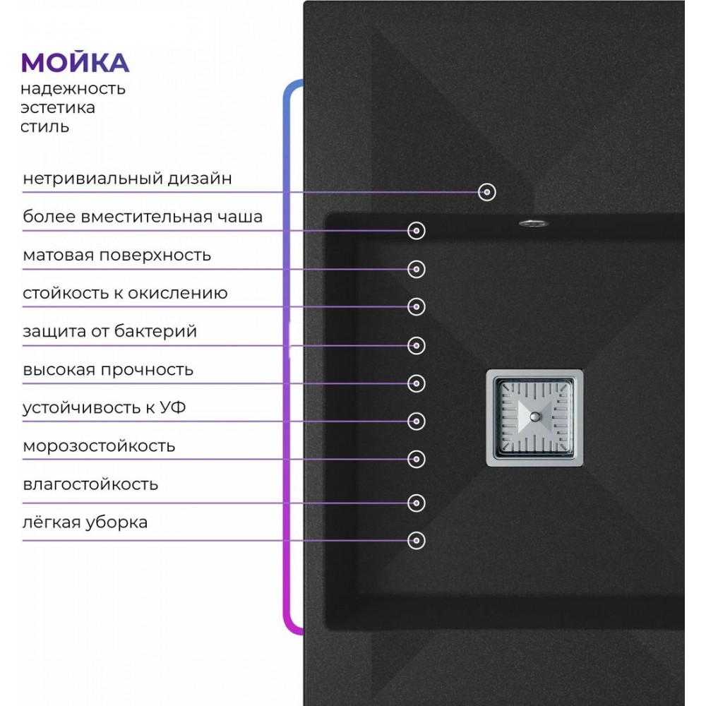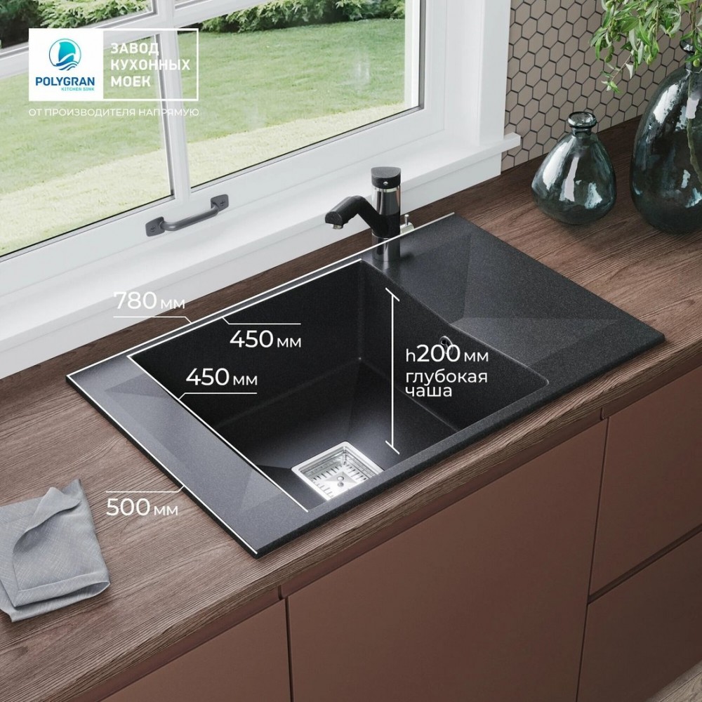 Описание Кухонная мойка Polygran Blade 780 (космос)
