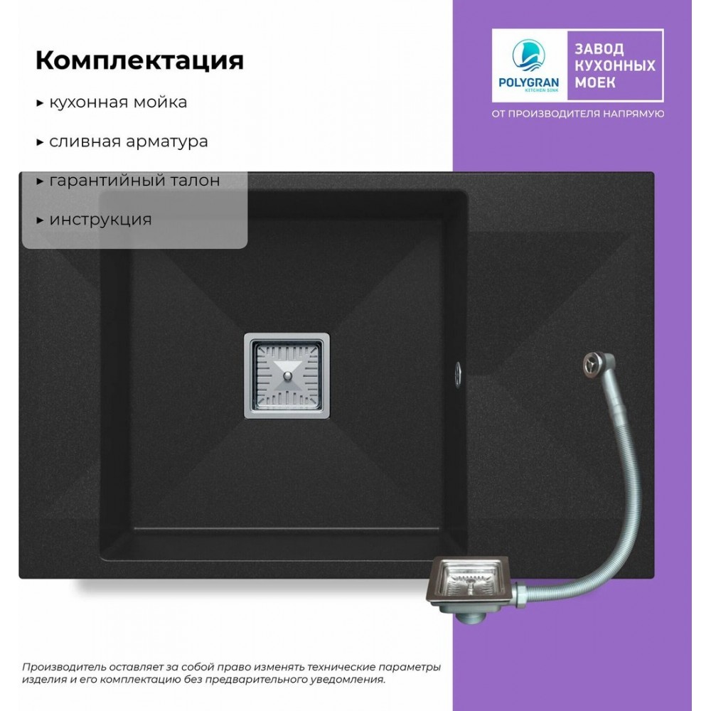Технические характеристики Кухонная мойка Polygran Blade 780 (космос)