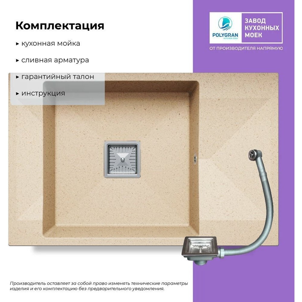 Описание Кухонная мойка Polygran Blade 780 (опал)