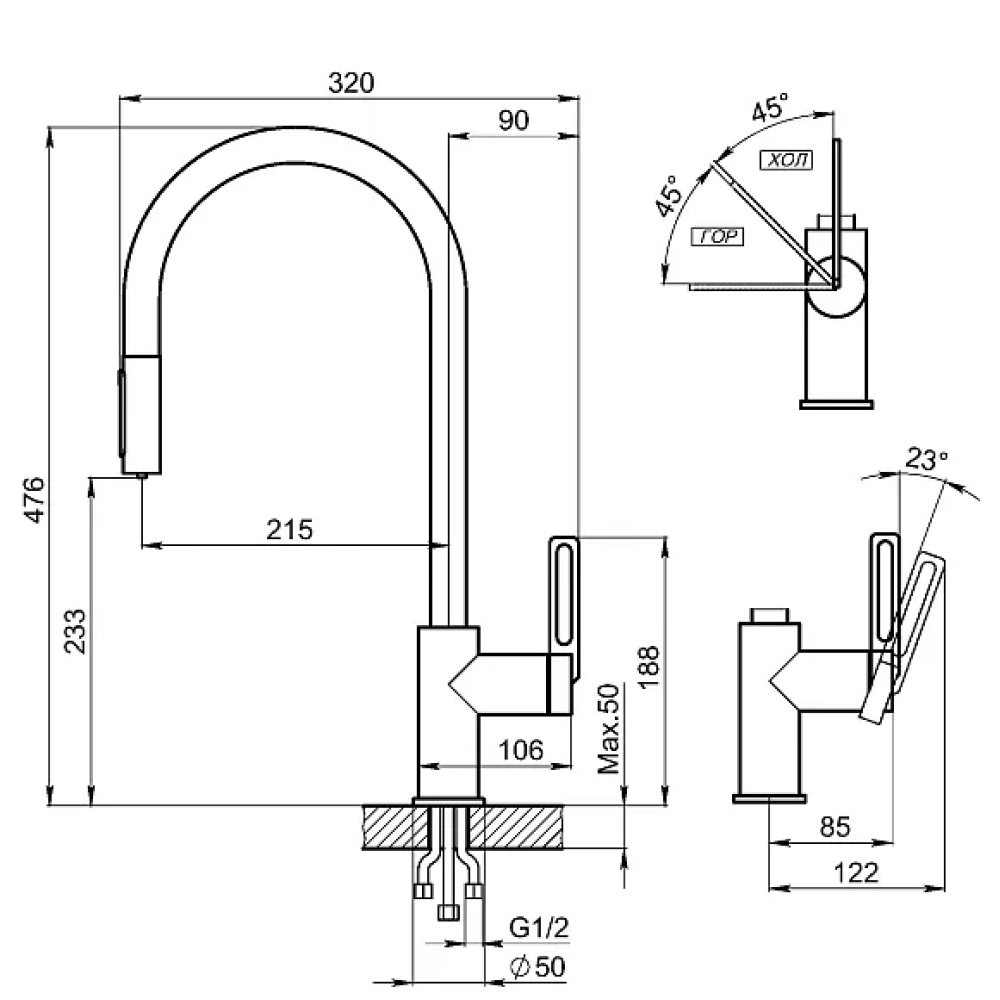 Высота излива: 233 мм