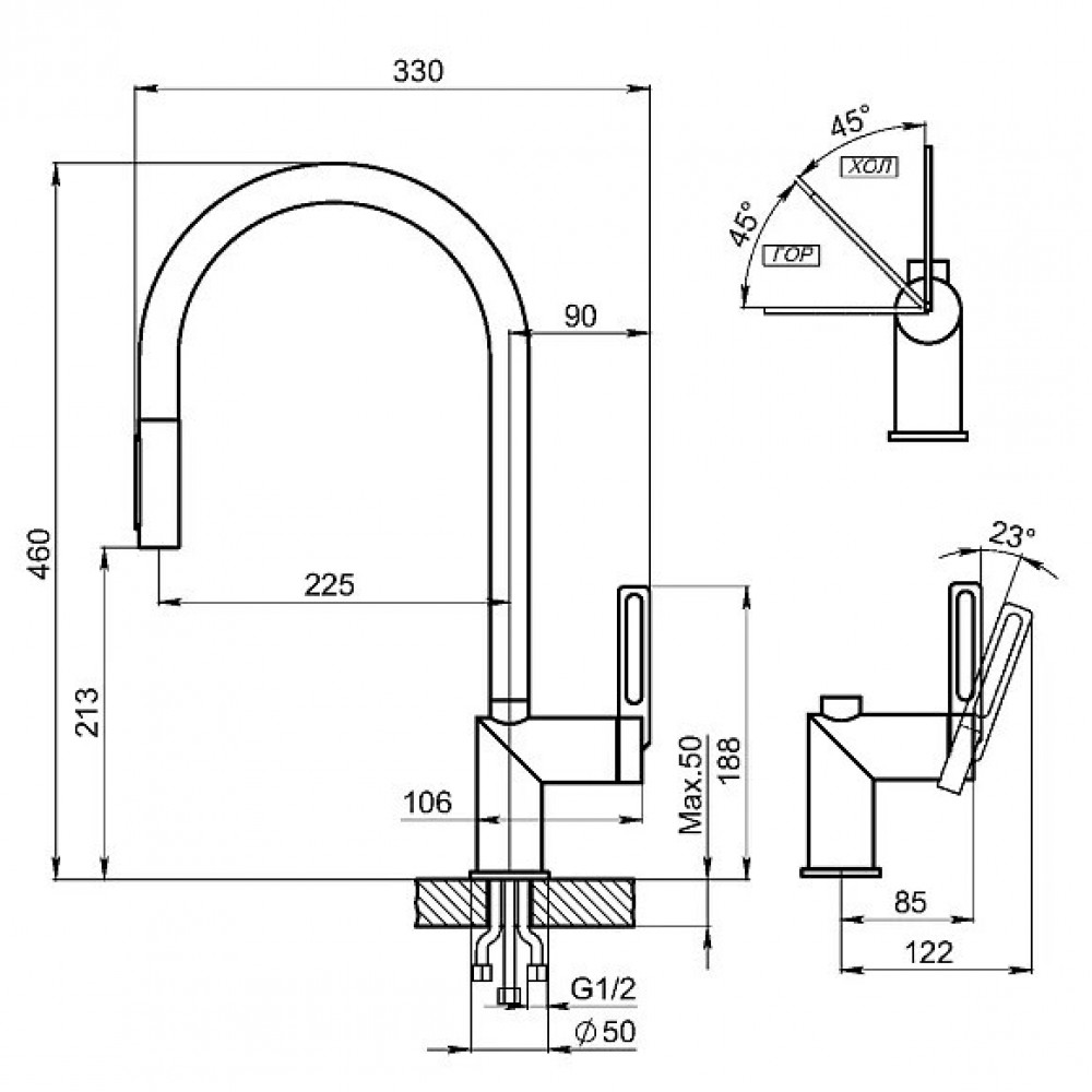 Высота излива: 213 мм
