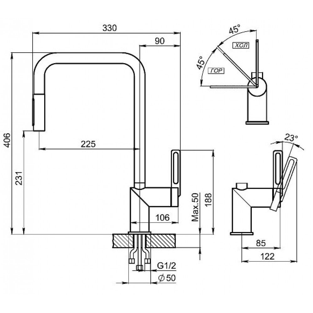 Высота излива: 231 мм