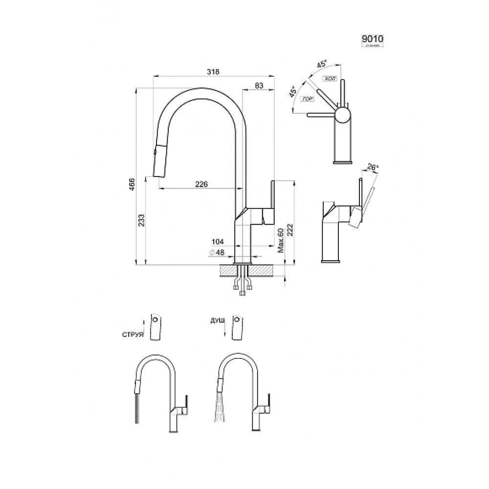 | Диаметр монтажных отверстий35 мм | Выдвижной изливесть |
