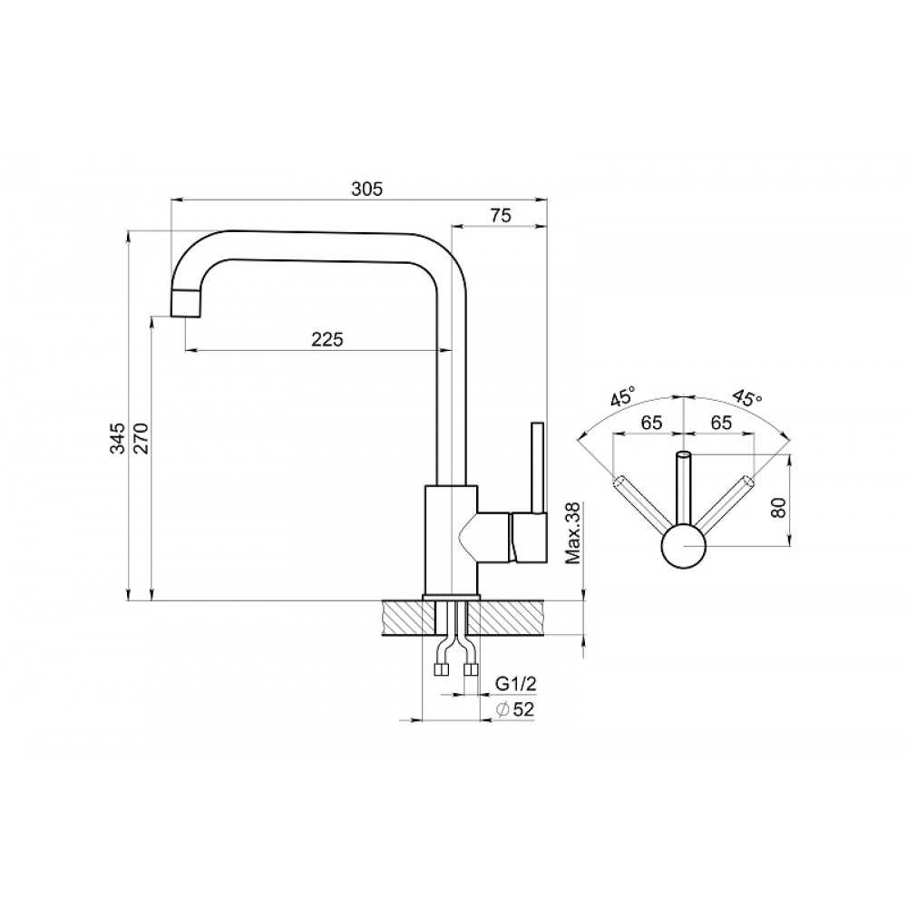 | Длина излива | 225 мм |