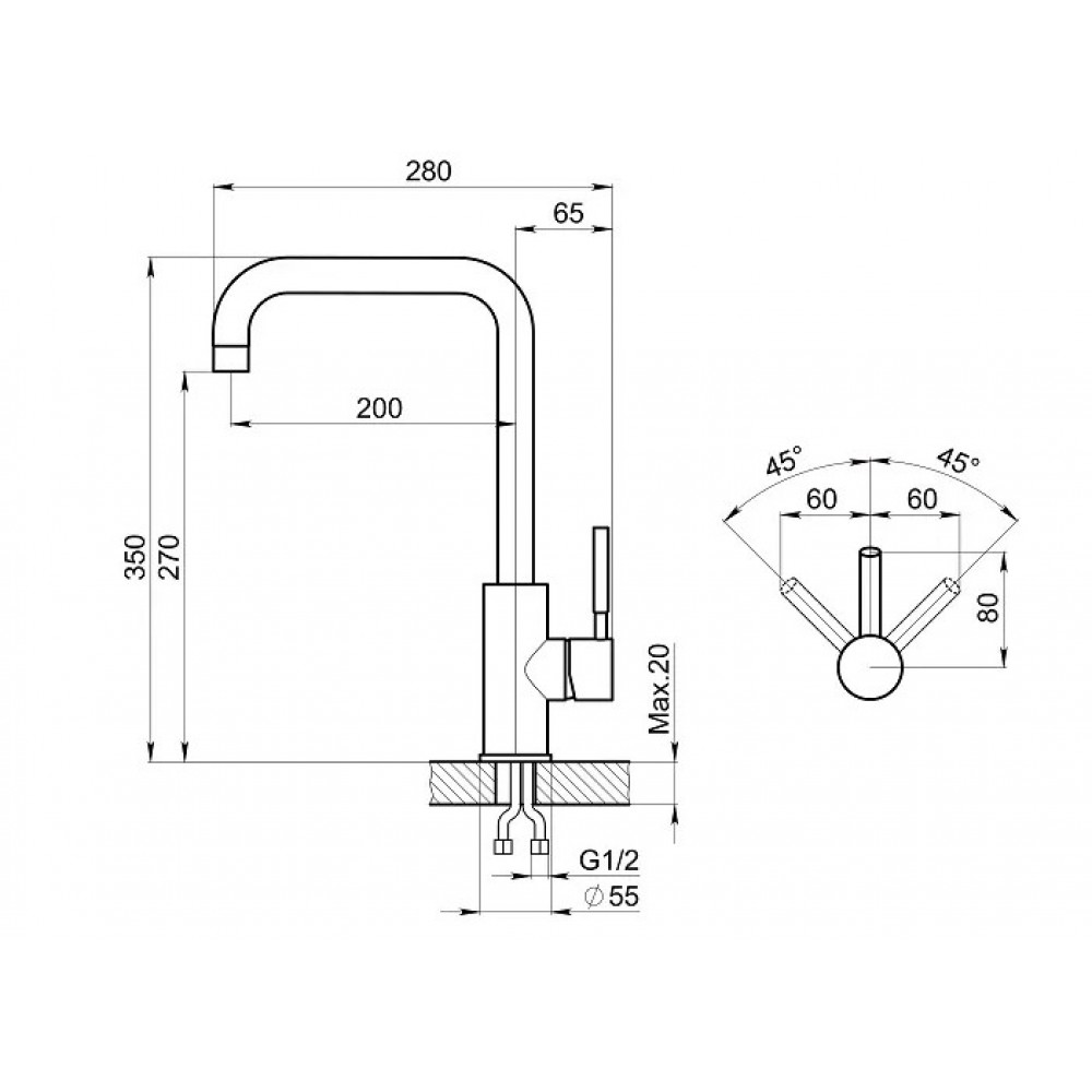 Длина излива: 200 мм