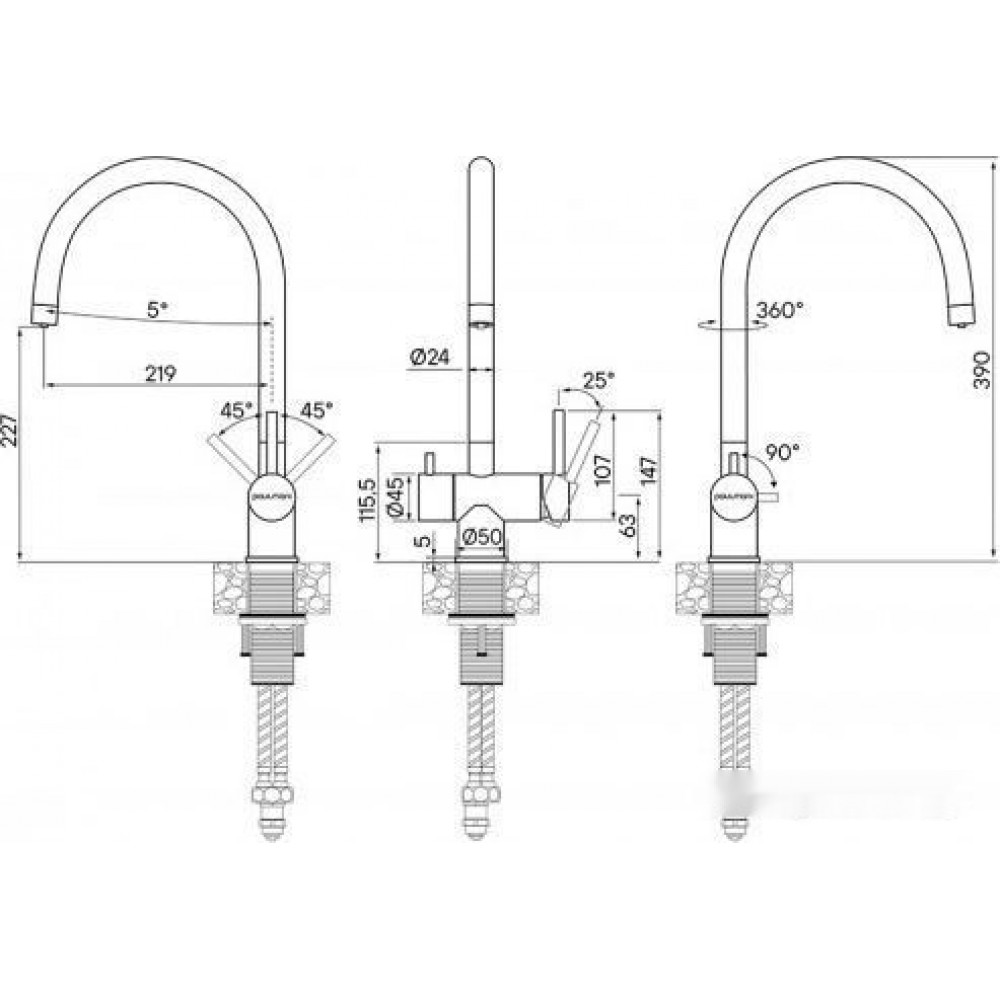 | Поворотный изливесть | Тип установкина раковину/столешницу |