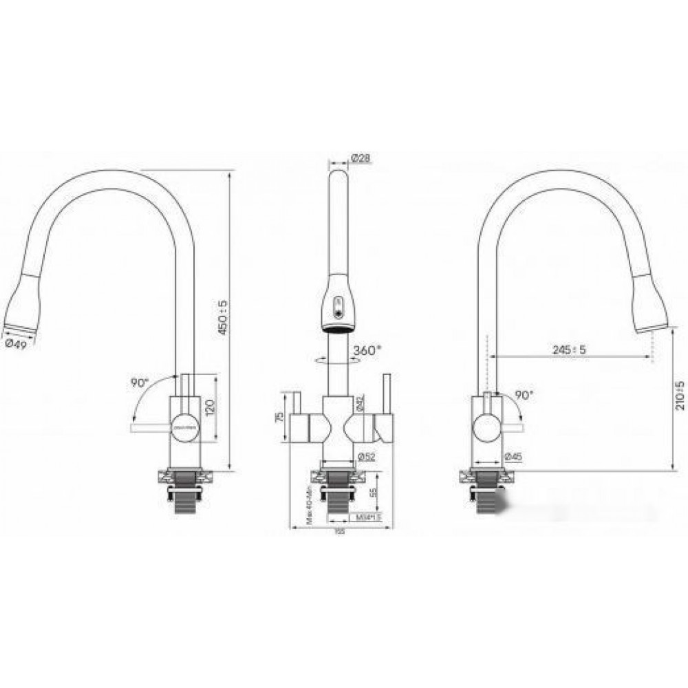 | Длина излива | 245 мм |