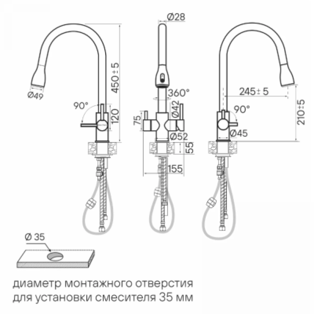 | Высота излива | 210 мм |