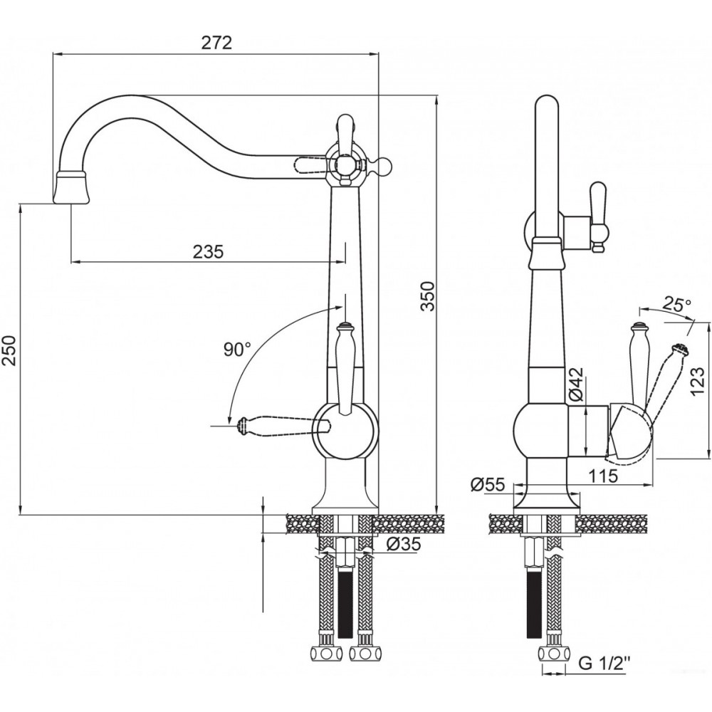 | Поворотный изливесть | Тип установкина раковину/столешницу |