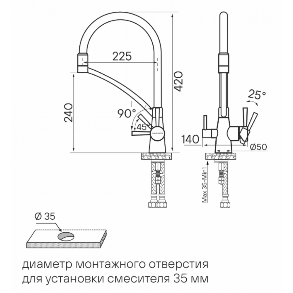 | Поворотный изливесть | Тип установкина раковину/столешницу |