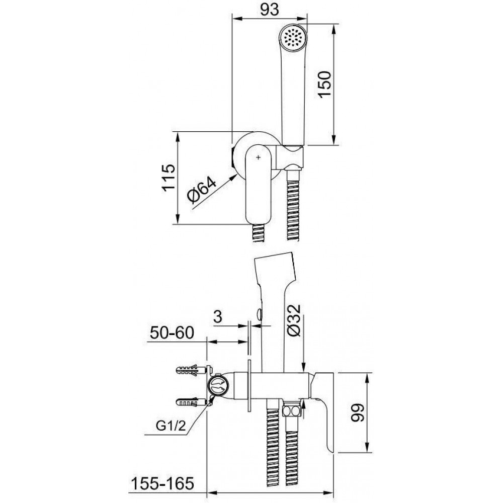 Технические характеристики Гигиенический душ Raglo R03.52.09