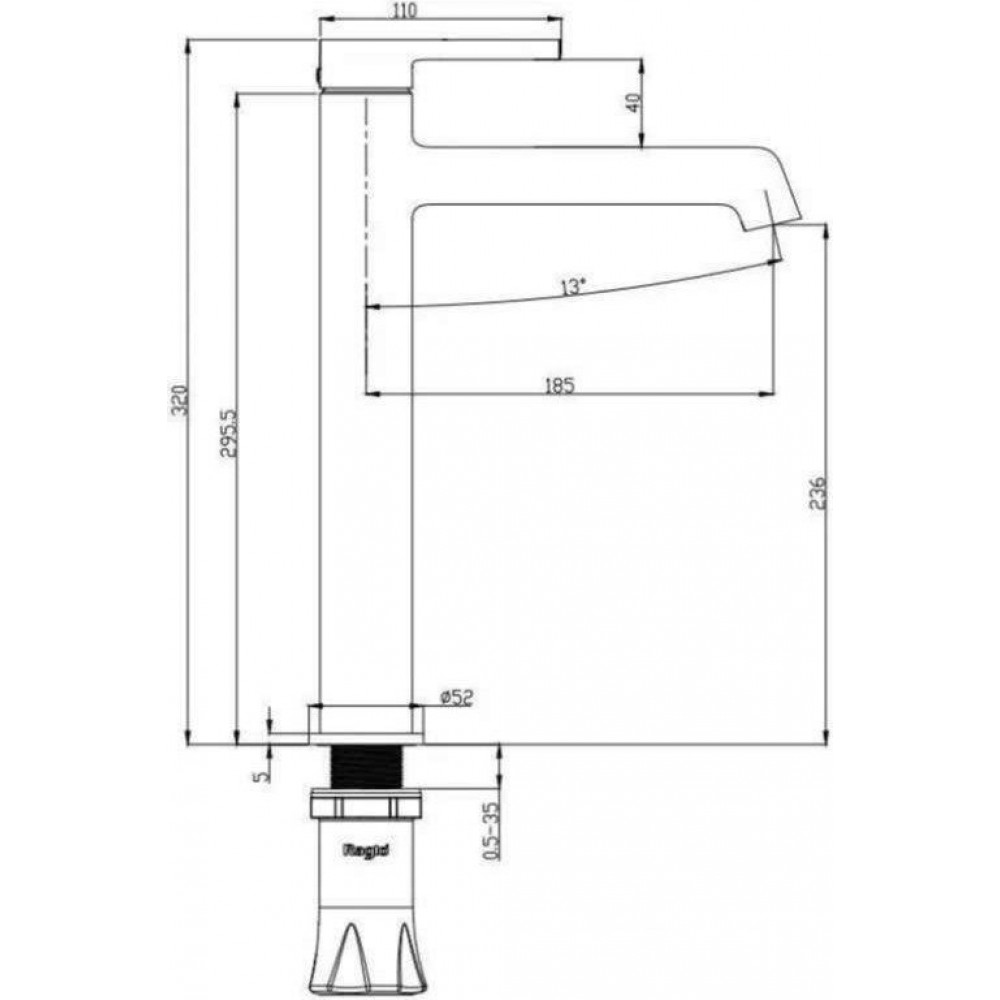 Длина излива: 185 мм