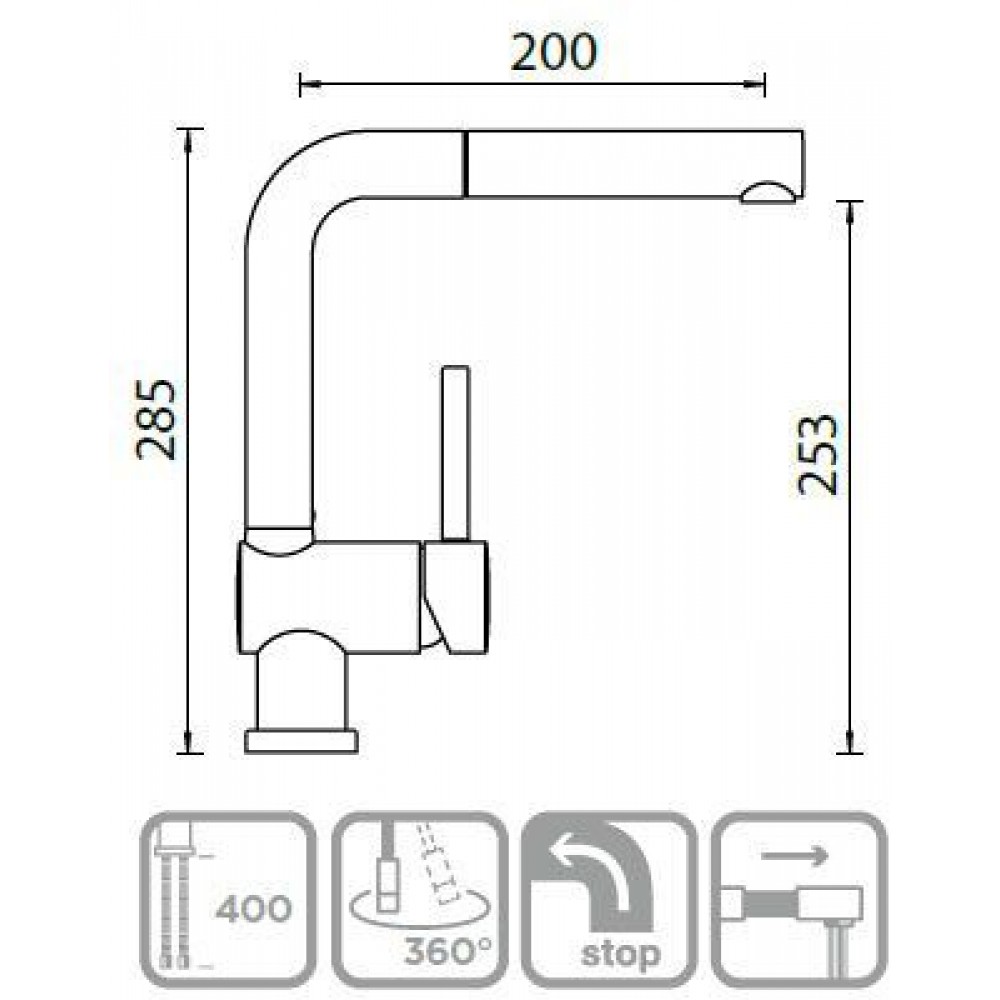 Высота излива: 253 мм