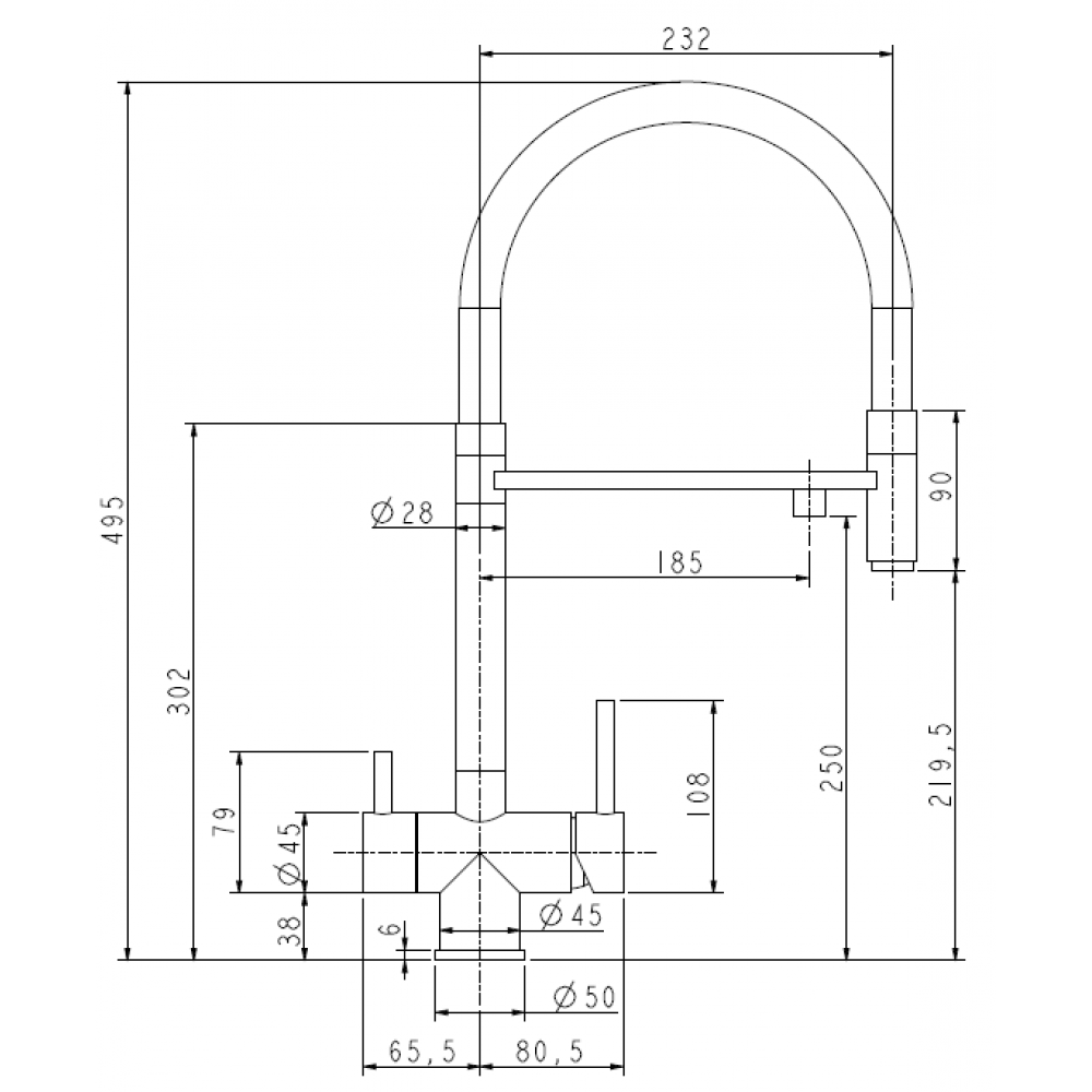 Длина излива: 232 мм