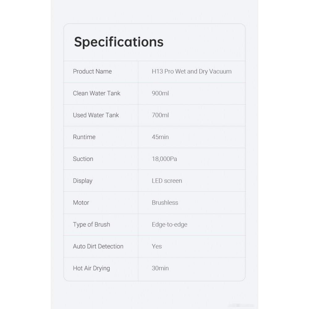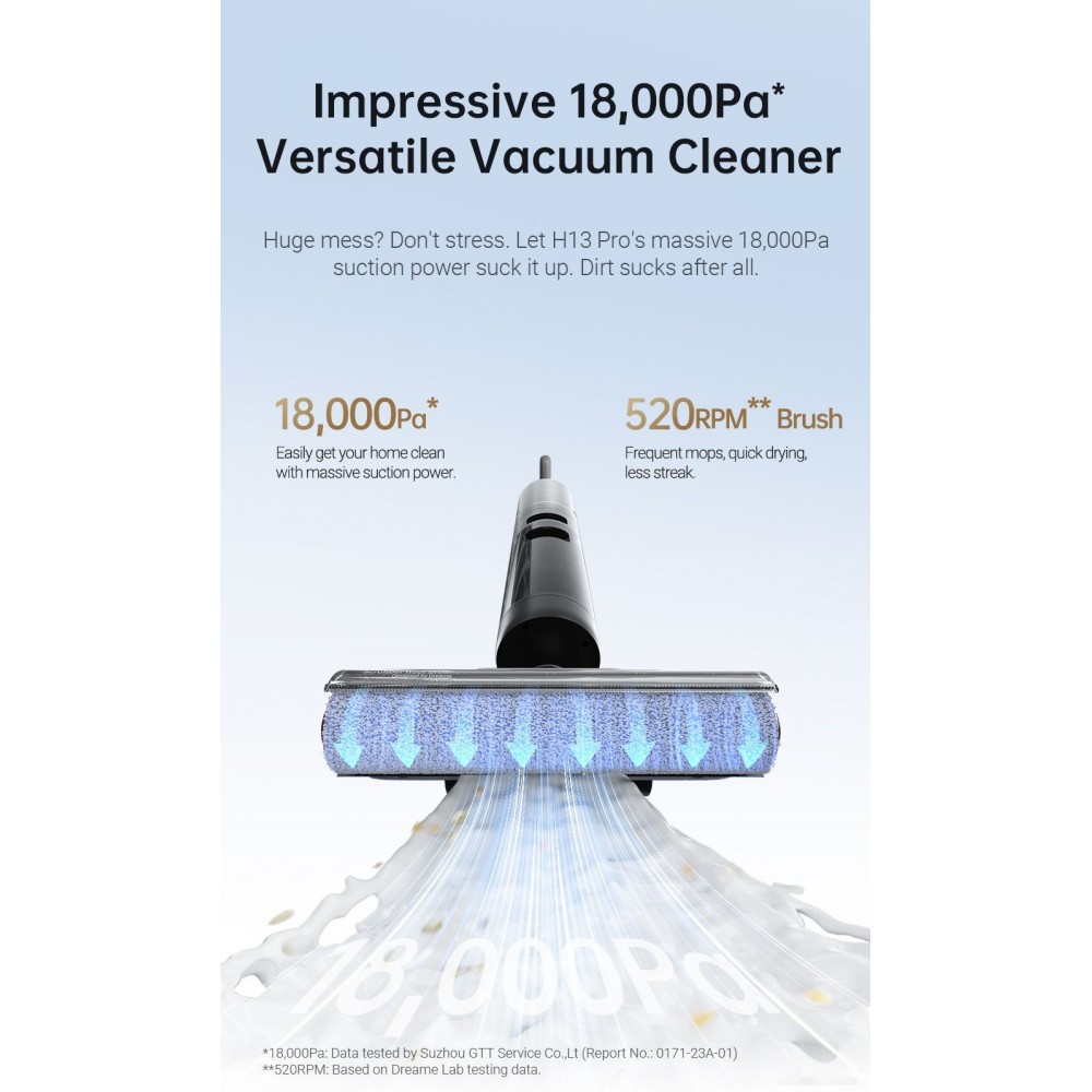 Технические характеристики Вертикальный пылесос с влажной уборкой Dreame H13 Pro Wet and Dry Vacuum (международная версия)