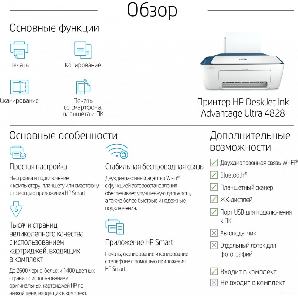 Технические характеристики Принтер HP DeskJet Ink Advantage Ultra 4828 25R76A