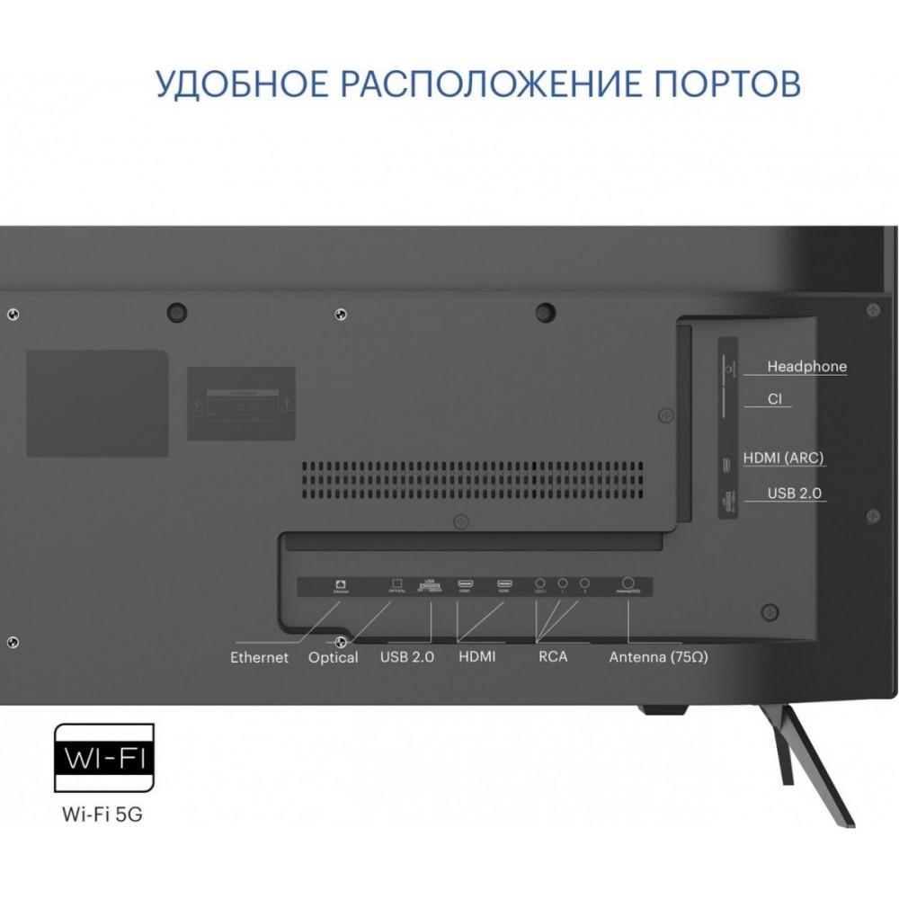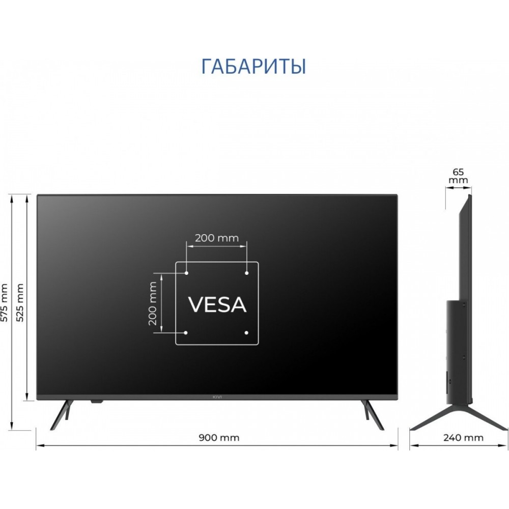 | Пульт в комплекте | KIVI RC70 – серый с голосовым управлением и кнопками Netflix, YouTube |