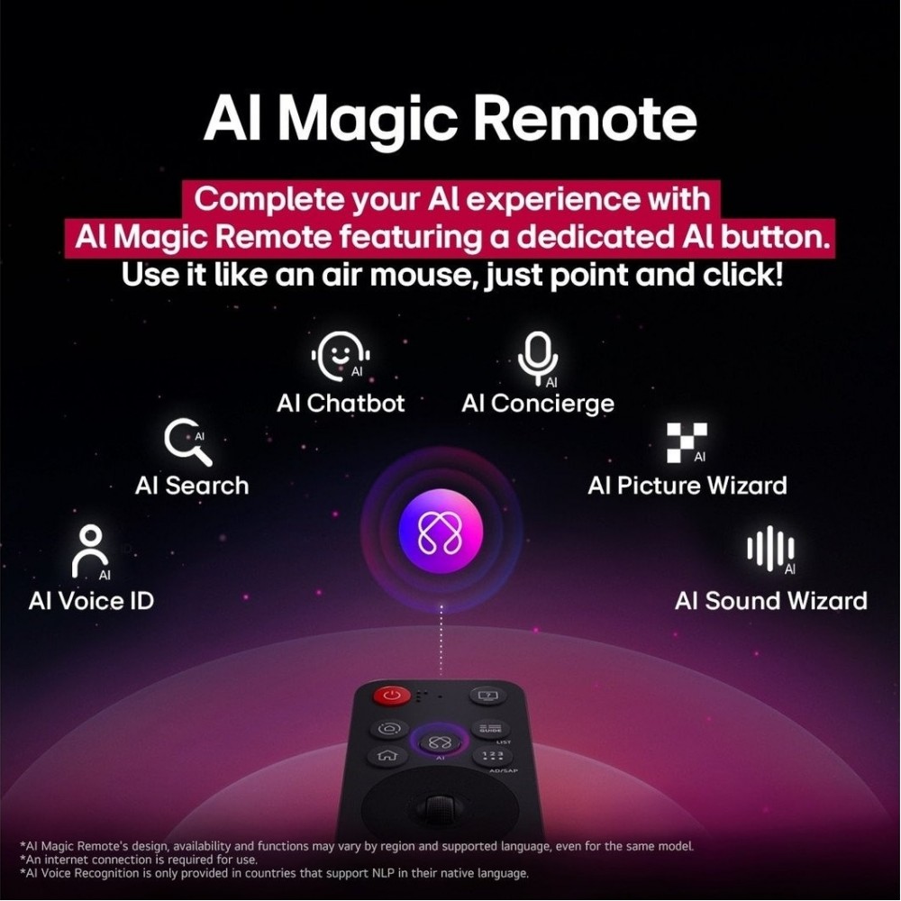 Оригинальные функции: AI Magic Remote- AI Chatbot- AI Concierge- AI Picture Wizard- AI Sound Wizard- Home Hub- поддержка Matter- Multi View- Gaming Portal