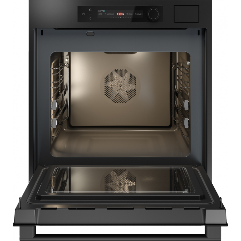 Дополнительные режимы: Сухой горячий воздух, Большой гриль + Работа вентилятора, Верхний нагрев + Нижний нагрев + Конвекция + Пар, Верхний нагрев 30% + Нижний нагрев 70%, Горячий воздух Eco, Микроволны + Горячий воздух, Микроволны, Большой гриль + Работа вентилятора + Микроволны, Верхний нагрев + Нижний нагрев + Работа вентилятора + Микроволны, Микроволны + AirFry, Пар + Горячий воздух