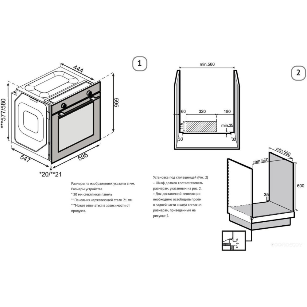 | Ширина ниши | 56 см |