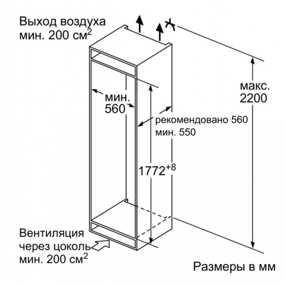 Глубина ниши для встраивания: 55 см