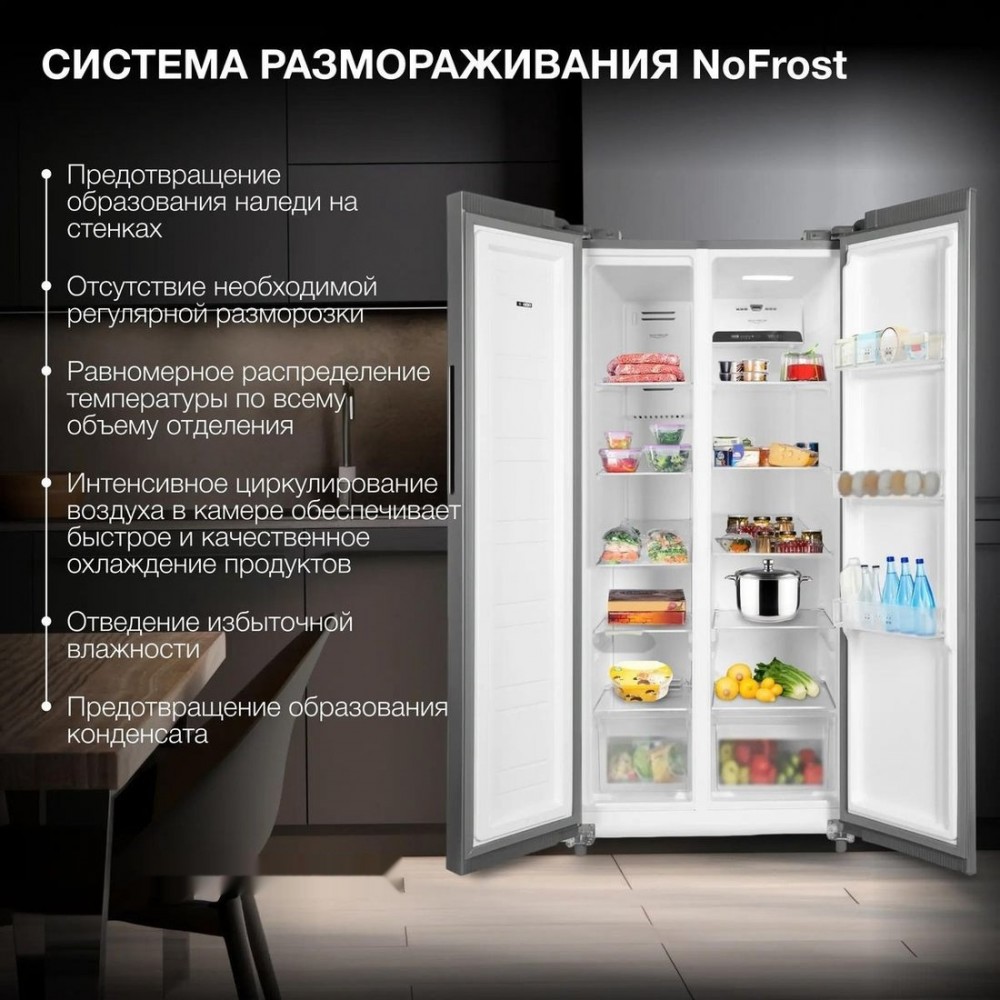 Описание Холодильник side by side Hyundai CS45082F (нержавеющая сталь)