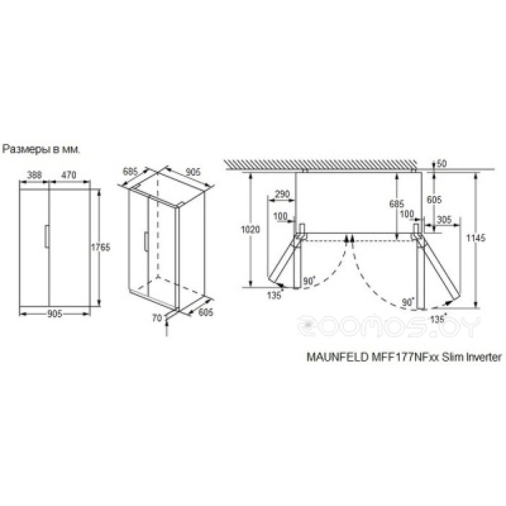 Технические характеристики Холодильник side by side Maunfeld MFF177NFW Slim Inverter