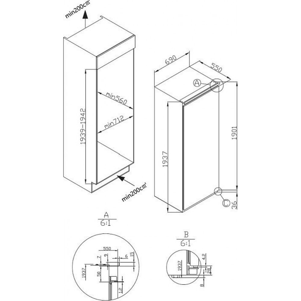 | Высота ниши для встраивания | 193.9 см |