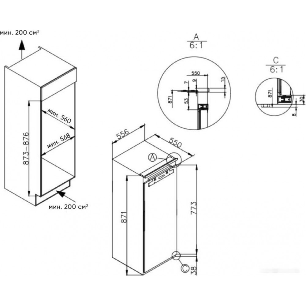Глубина ниши для встраивания: 56 см