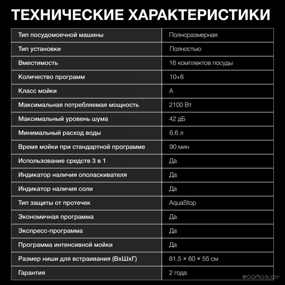 | Количество программ мойки | 10 |