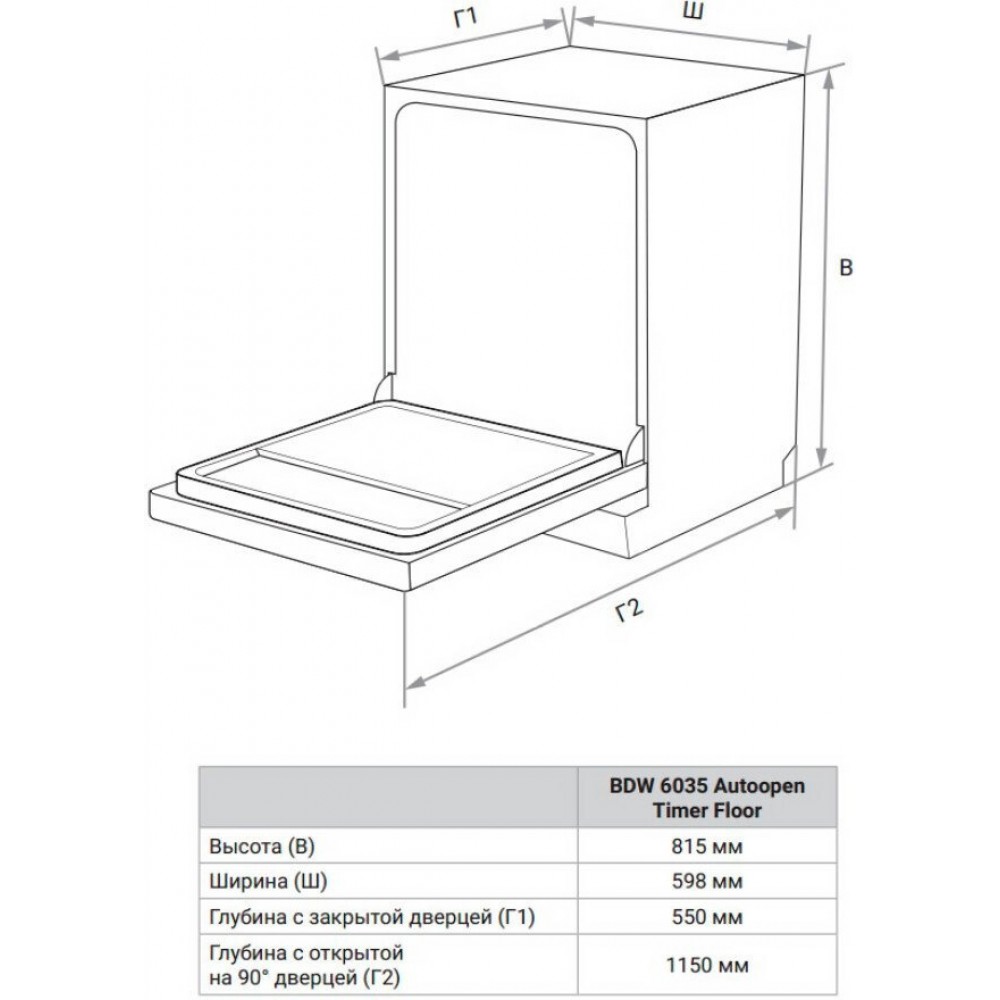Технические характеристики Посудомоечная машина Weissgauff BDW 6035 Autoopen Timer Floor