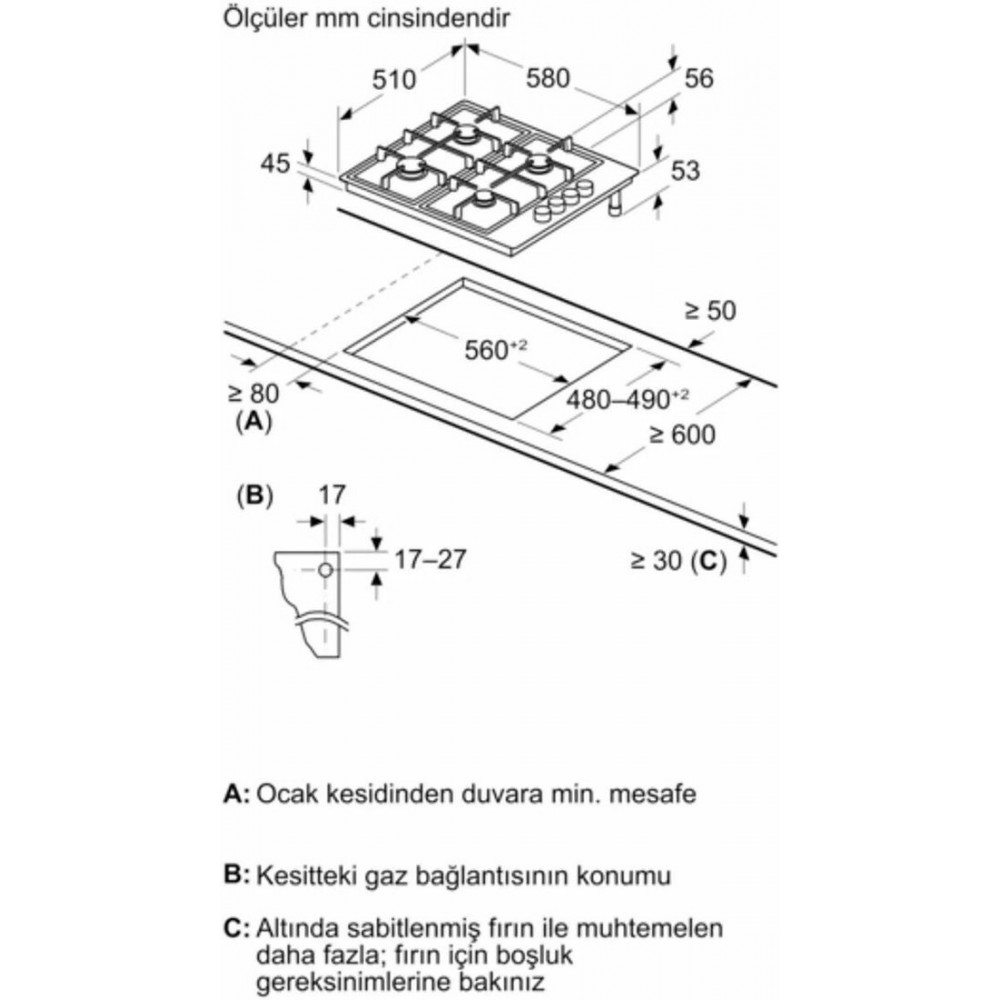 Ширина для встраивания: 56 см