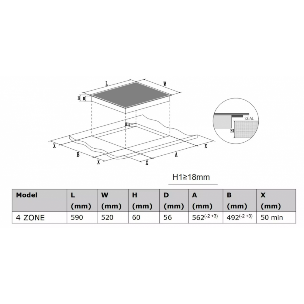 Ширина для встраивания: 56 см