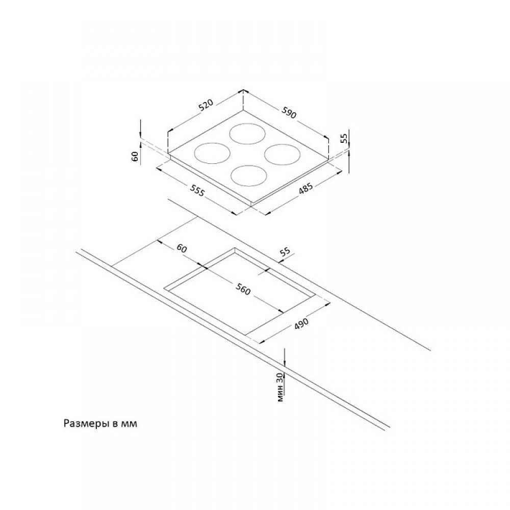 Ширина для встраивания: 56 см