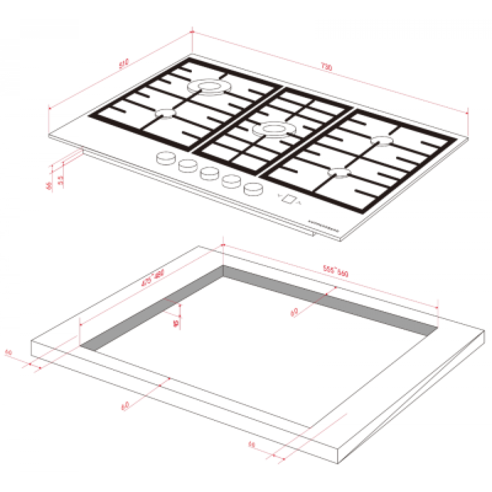 | Газ-контроль конфорокесть | Материал панелизакаленное стекло |