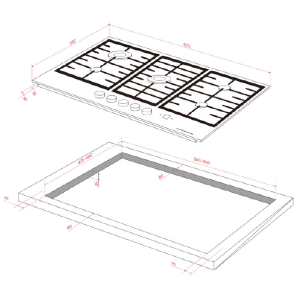 | Газ-контроль конфорокесть | Материал панелизакаленное стекло |