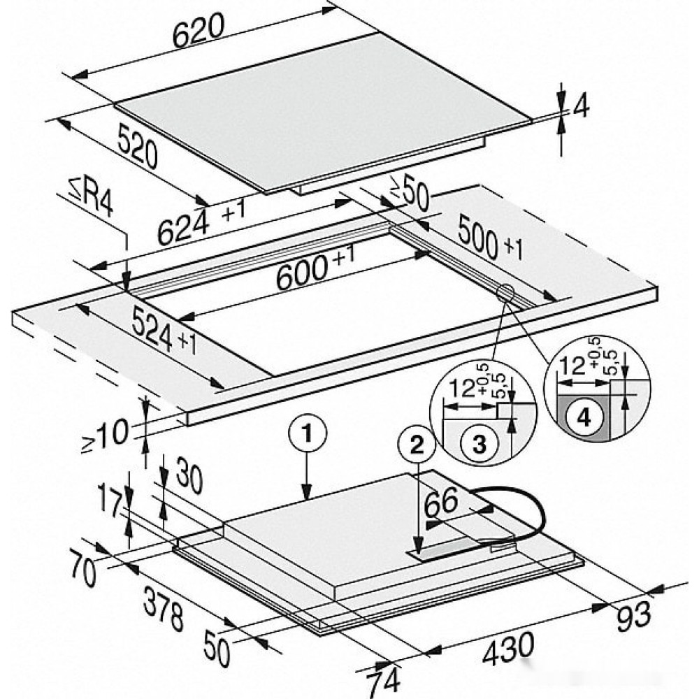 Конфорок индукционных: 4