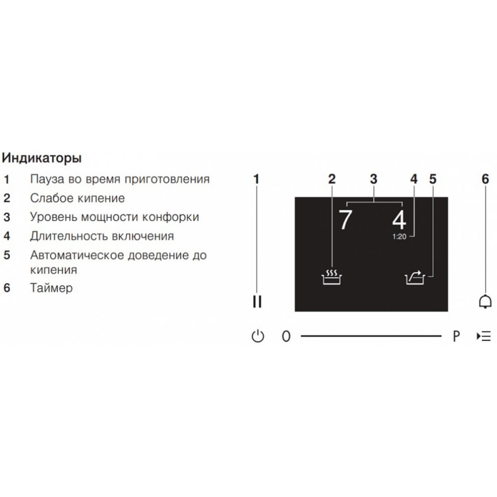 | Индикатор остаточного теплаесть | Индикация выбранной мощностиесть |