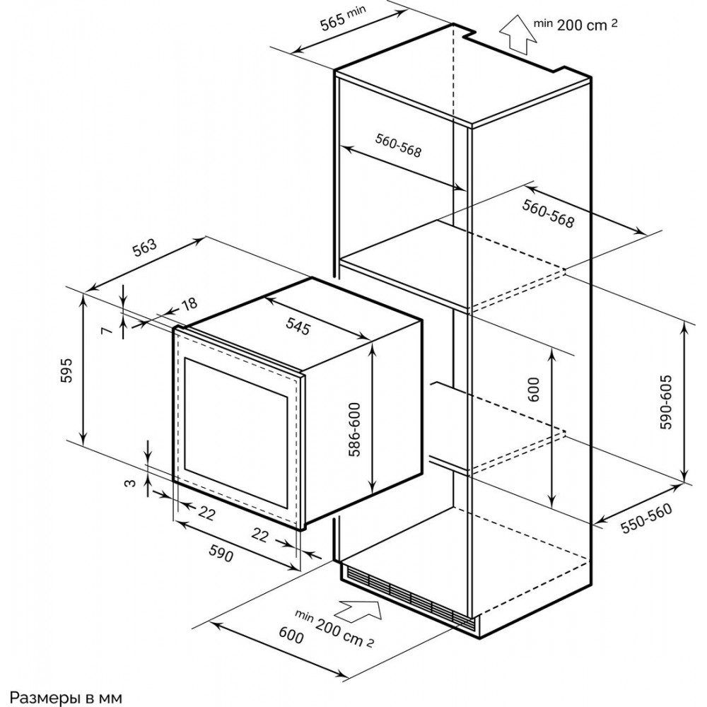 Высота ниши для встраивания: 60 см