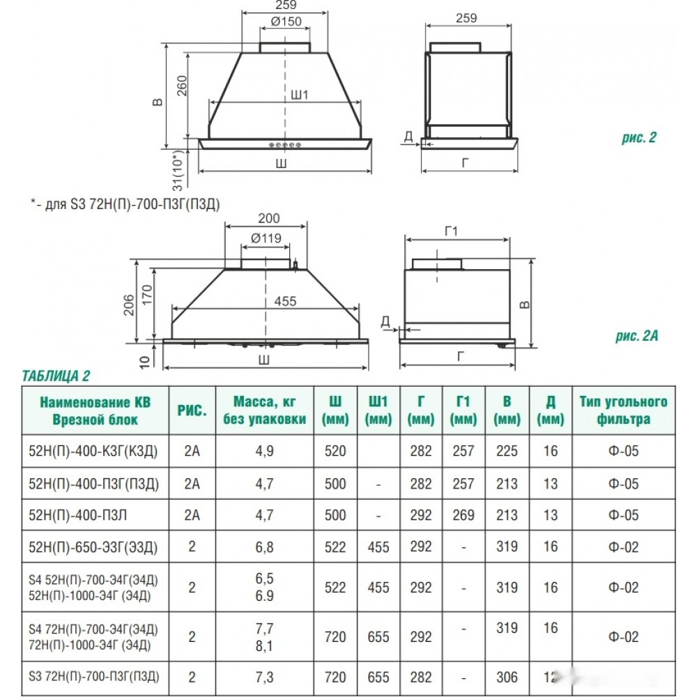 | Видвстраиваемая | Конструкцияскрытая |