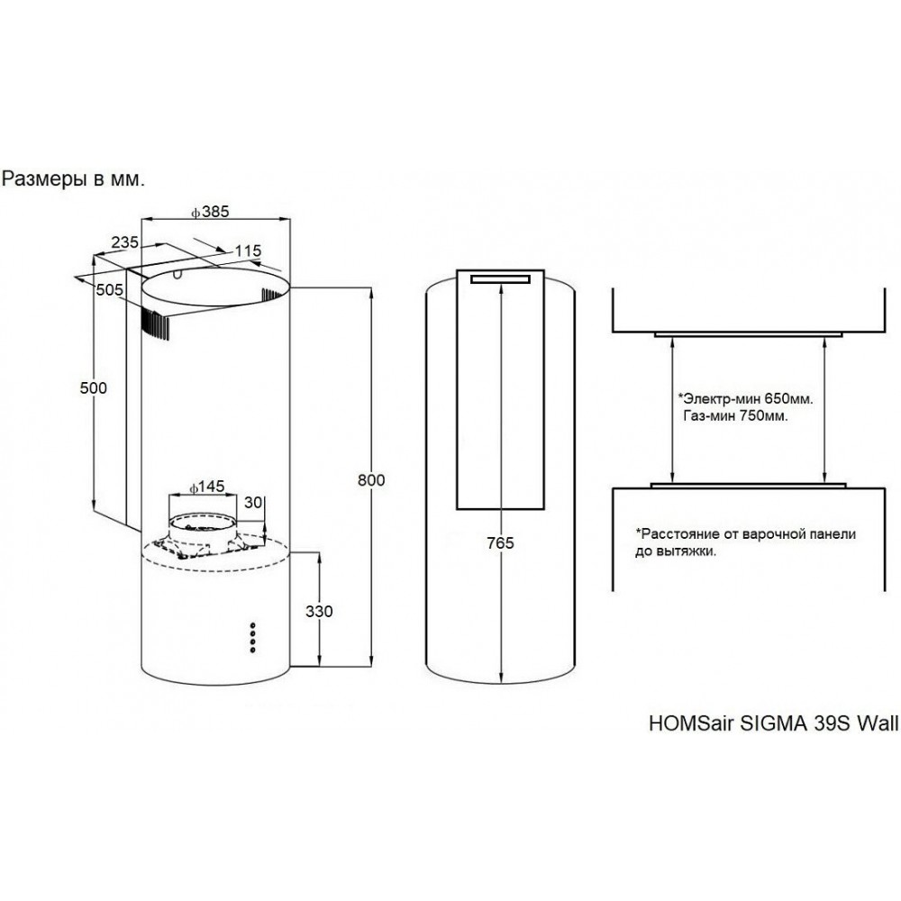 Описание Вытяжка HOMSair Sigma 39S Wall (белый)