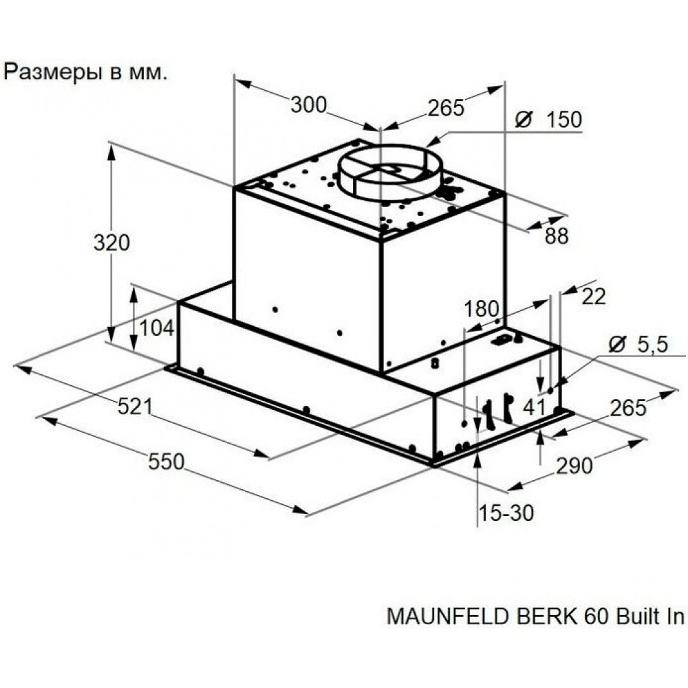 Технические характеристики Вытяжка Maunfeld BERK 60 Built In (черный антрацит)